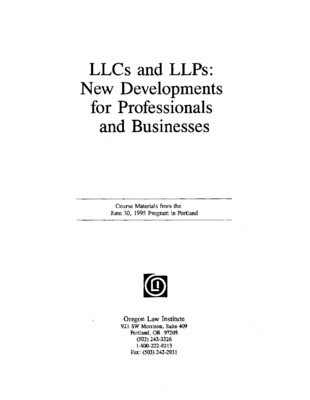 LLCs and LLPs: New Developments for Professionals and Businesses